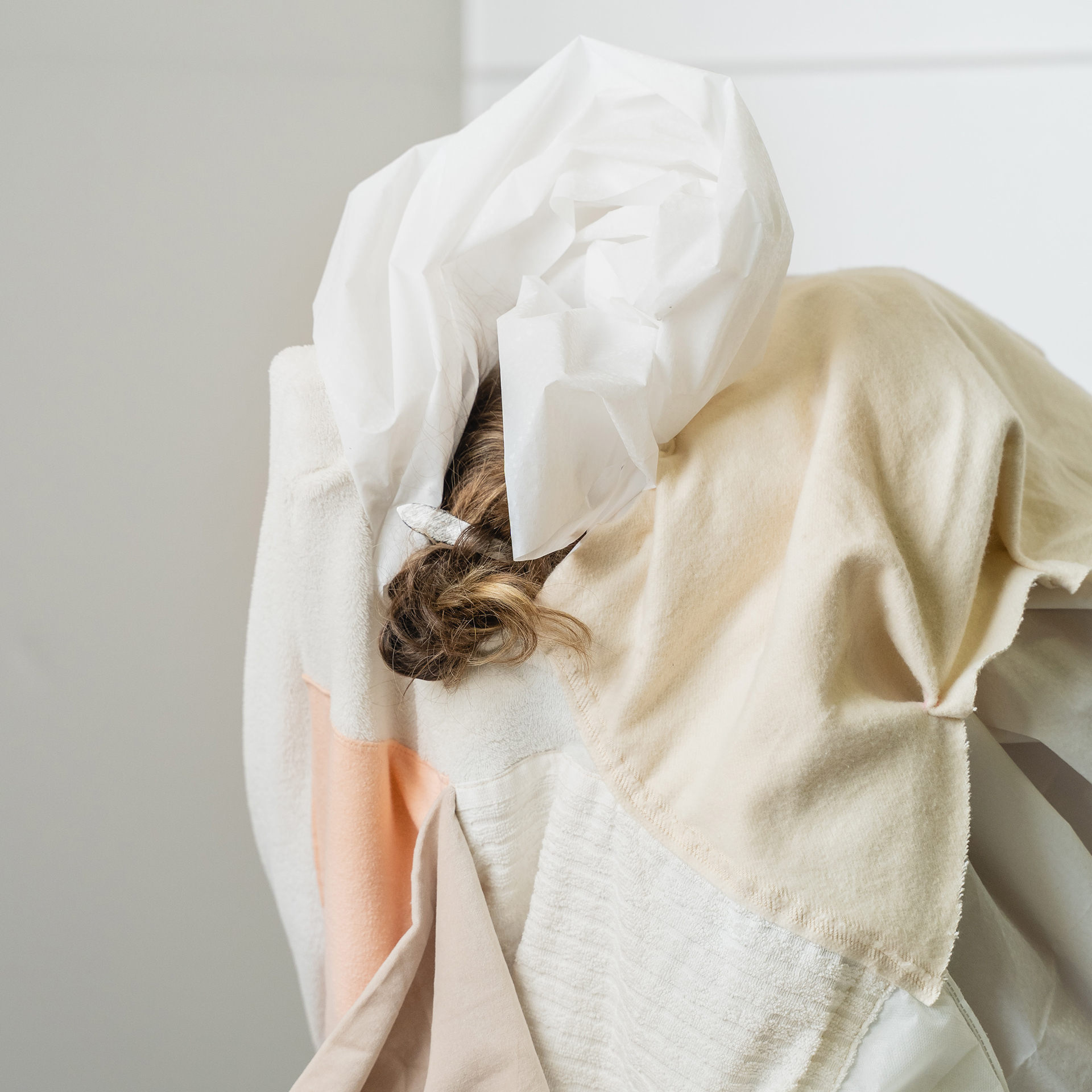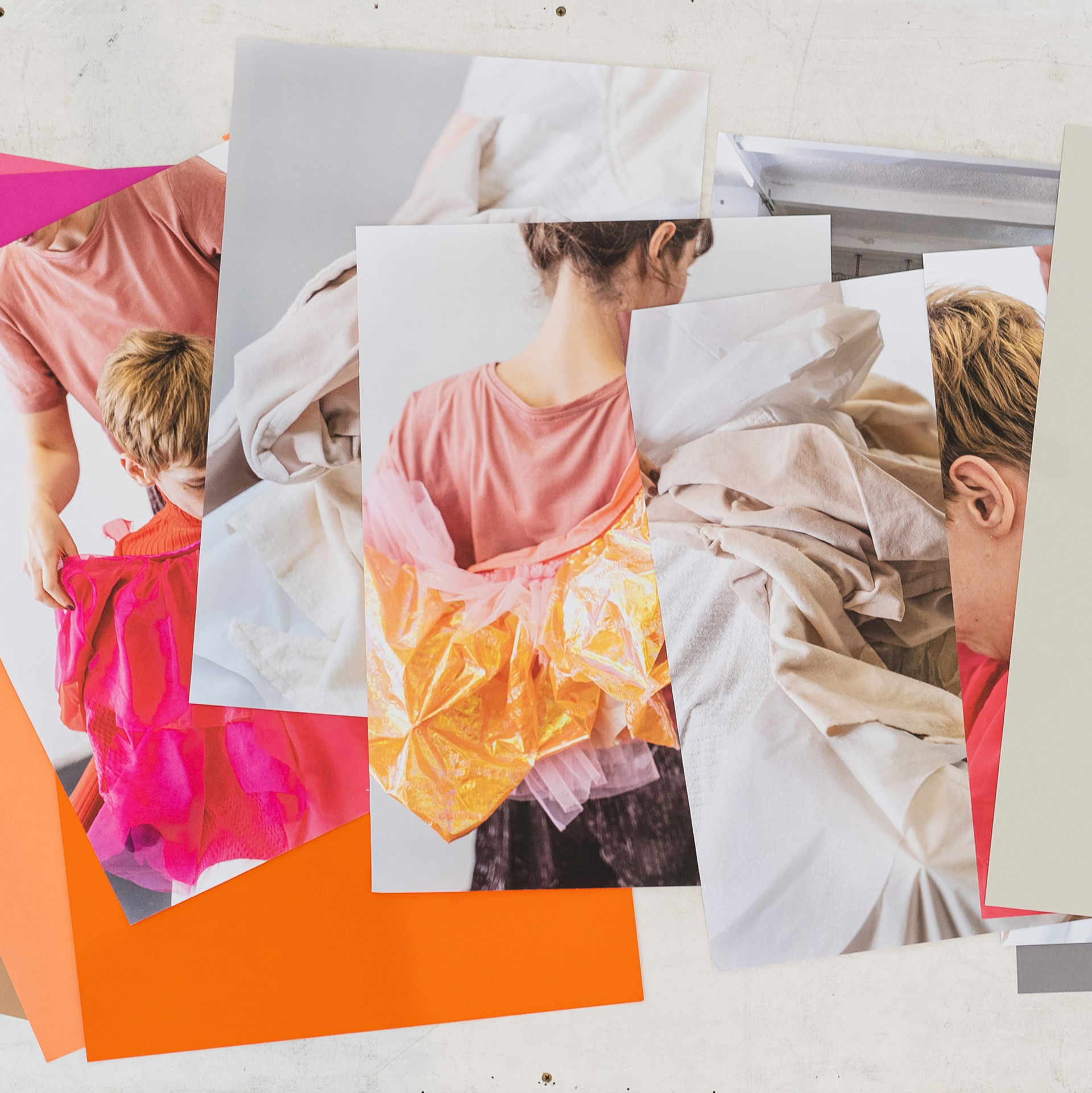 Collages, objects, video projection / Collagen, Objekte, Videoprojektion, mit / with Katharina Praniess, Camera / Kamera: Robert Puteanu, costume design / Kostüm: Liliana Schaber, Exhibition / Ausstellung: Brunnenpassage, Vienna / Wien