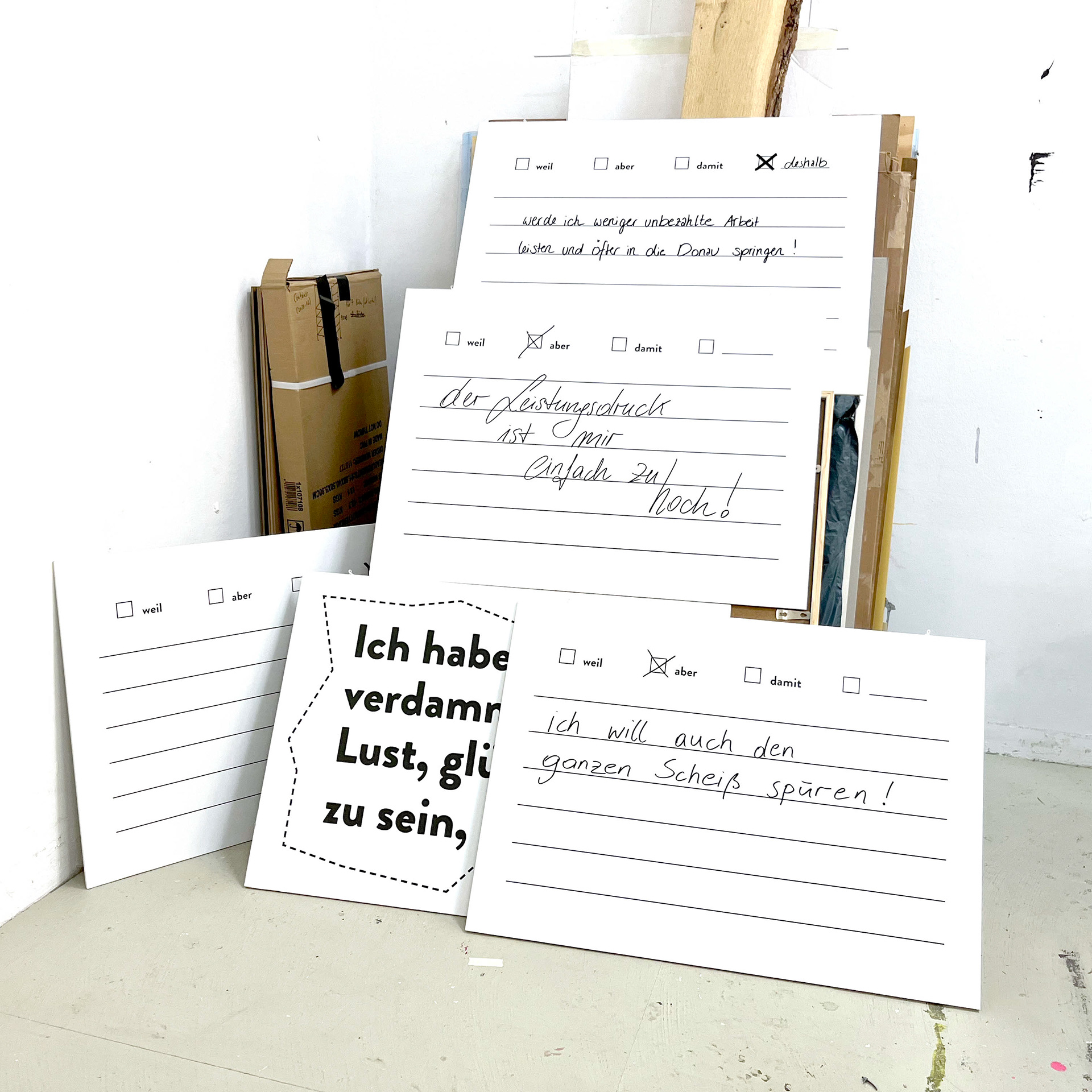 Befragung über das Glück / Survey about happiness, 14,8x10,5cm & 50x70cm, Photo / Foto: Robert Puteanu, Exhibition / Ausstellung: Ottakringer Kunstpreis, SOHO-Studios, Wien / Vienna